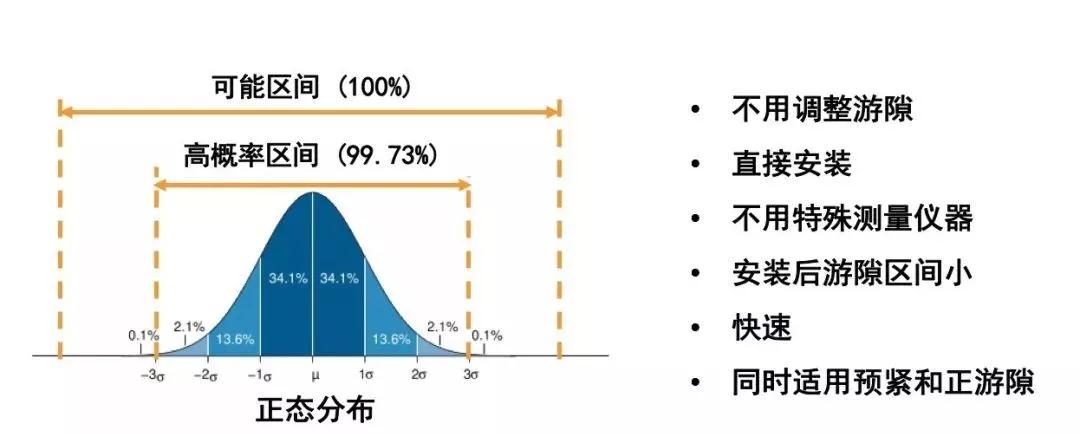 Set-Right使用概率方法并控制相關(guān)零件的尺寸公差來(lái)確保所有的裝配總成中有99.73%的軸承游隙落在可接受的范圍內(nèi)。